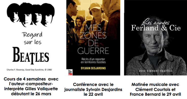 LA PROGRAMMATION DÉTAILLÉE DE LA SAISON HIVER-PRINTEMPS 2026 EST MAINTENANT DISPONIBLE. D'AUTRES BELLES DÉCOUVERTES VOUS ATTENDENT. CONSULTEZ LA PAGE DES COURS ET LA PAGE DES RENDEZ-VOUS DU MERCREDI AFIN DE PLANIFIER VOTRE HORAIRE.