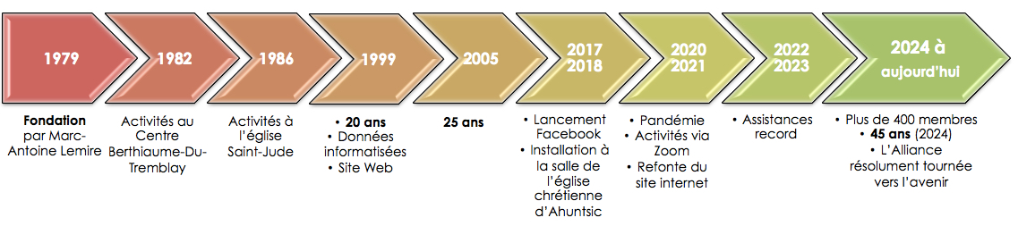 - Incorporation comme organisme sans but lucratif (OSBL) sous la dénomination sociale : « Alliance culturelle L.A.C. » (Loisirs, Arts, Communication);